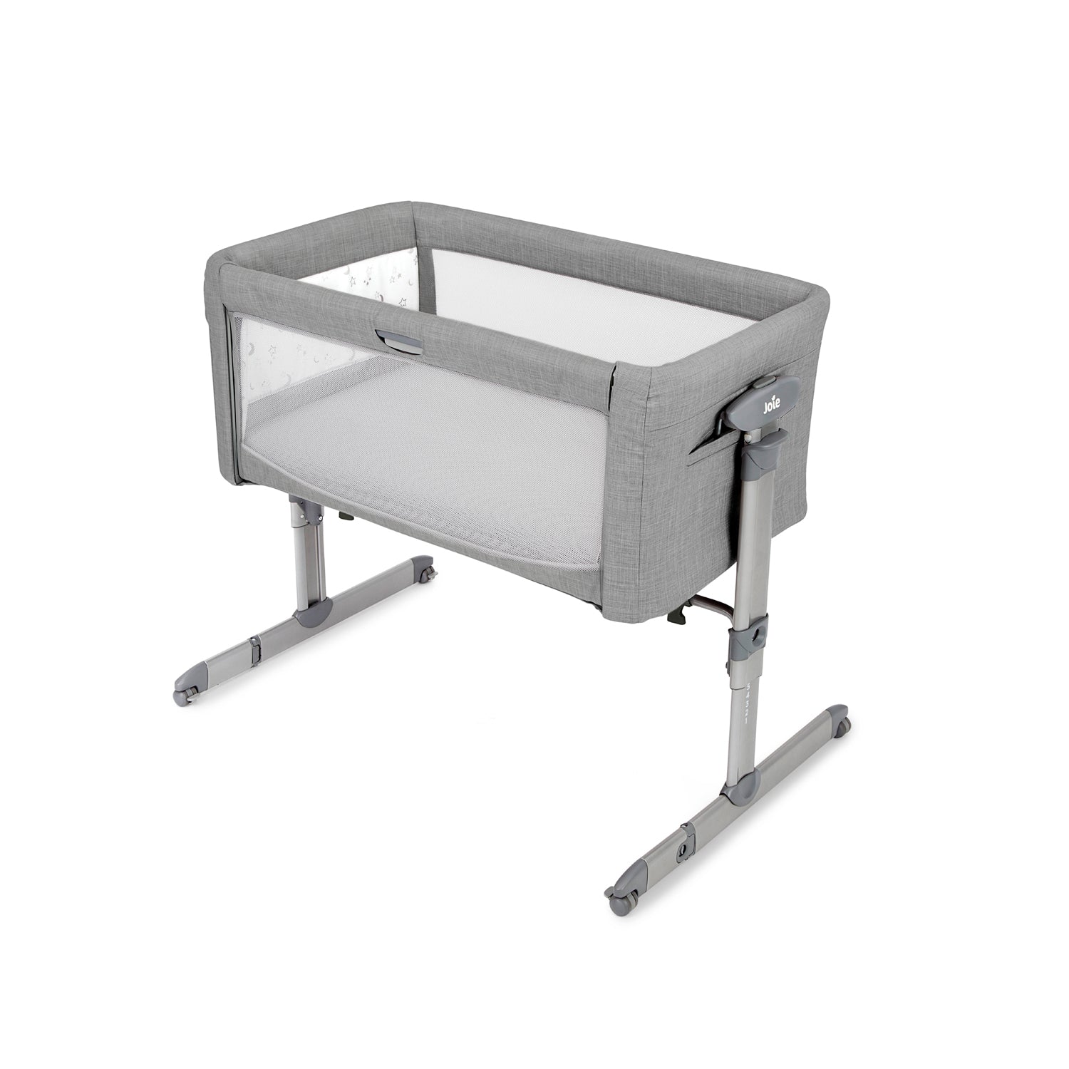 Lift and lower the sliding side panel just one hand for easy access to your little one… even in the dark